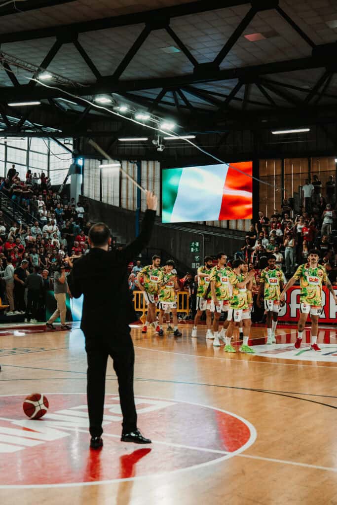 Un ringraziamento speciale a Pasquale Allegretti Gravina, che ha regalato un’emozionante interpretazione dell’inno con il suo violino elettrico, creando un momento di grande intensità all’interno del palazzetto.